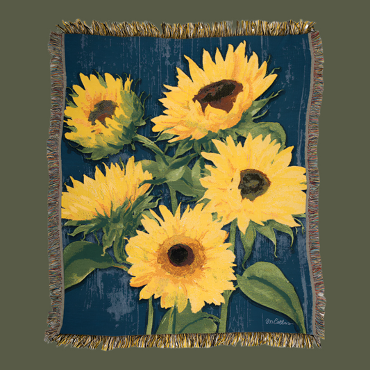 Zig Zag Sunflowers Blue 50X60 Tapestry Throw Woven