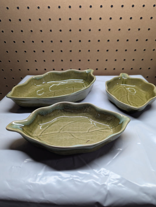 Vintage Green Leaf Trinket or Snack Bowls - Set of 3