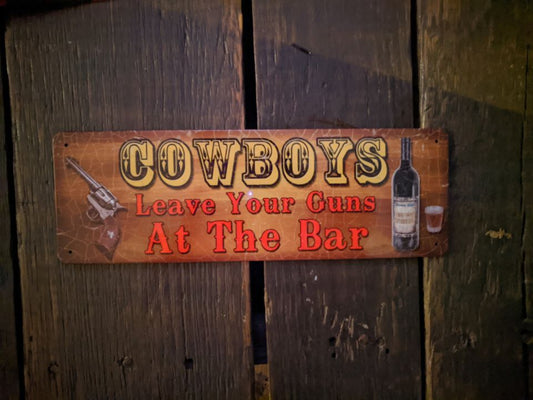 Cowboys Leave your Gun at the Bar Tin Sign 10.5"x3.5"