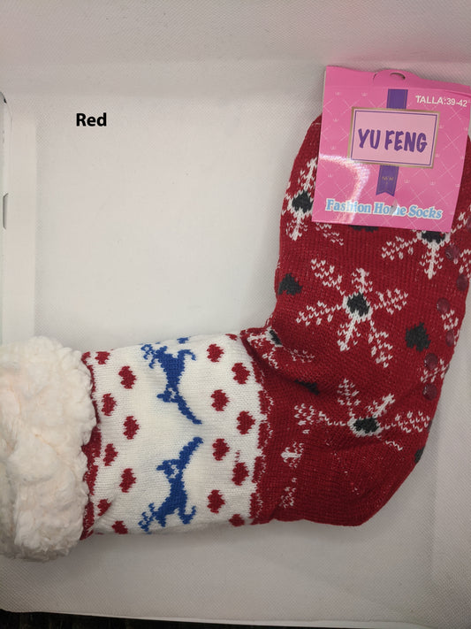 Fuzzy Snowflake Cabin Socks with Grips