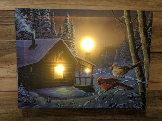 Golden Frost Cardinals LED Lighted Canvas Art 16"x12"
