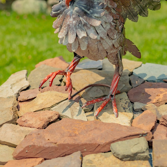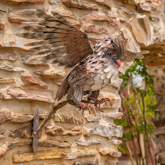 26.5" Tall Metal Great Horned Owl Taking Flight Off Branch Bramble