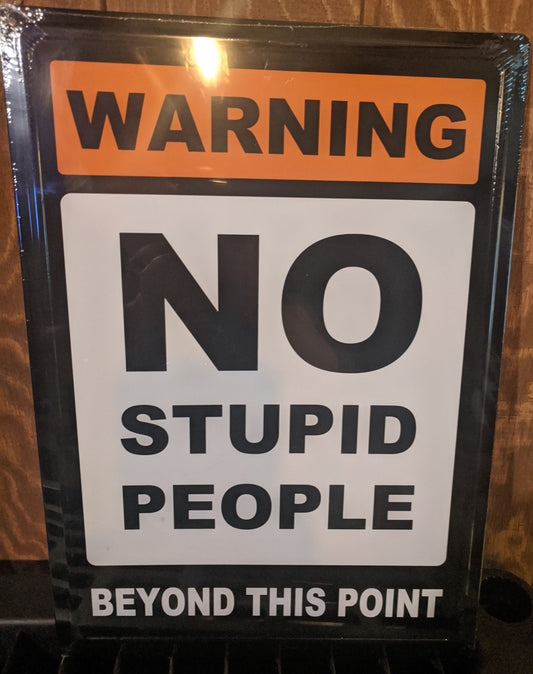 No Stupid People Beyond this Point - 12x17 Tin Sign