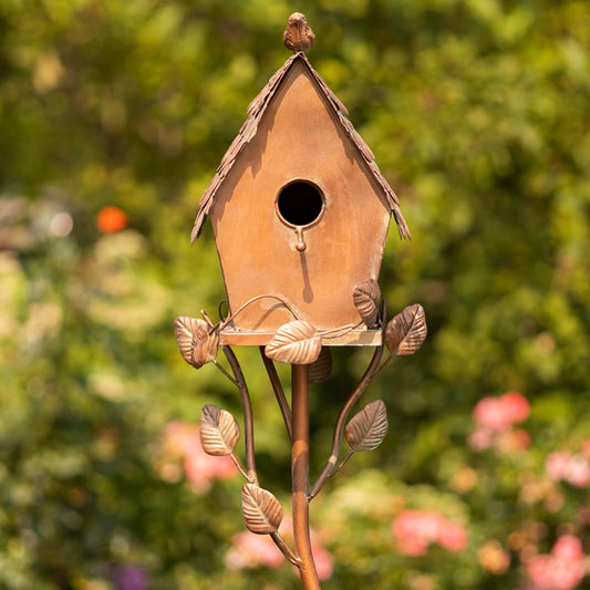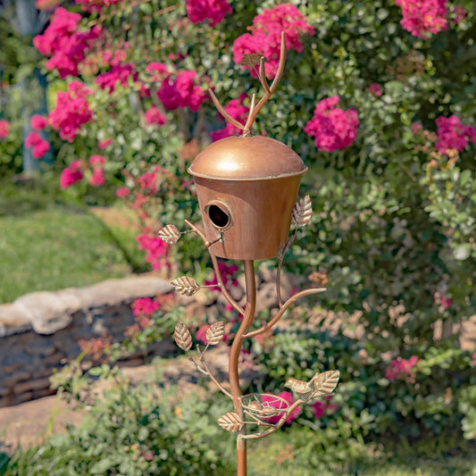 Antique Copper Finished Iron Birdhouse Stake with Dome Roof