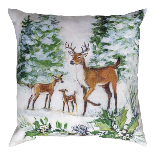 Season's Frost - Deer Family Clmaweave Pillow 18" x 18"