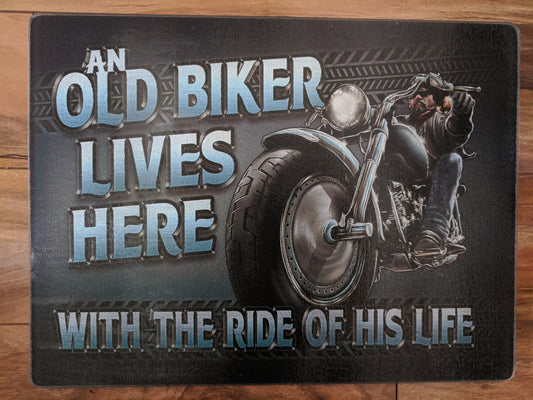 Old Biker Tempered Glass Cutting Board 12"x16"