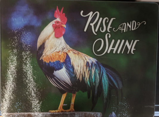 Rise and Shine Rooster Tempered Glass Cutting Board 12"x16"