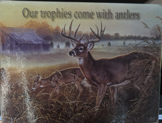 Our Trophies come with Antlers Tempered Glass Cutting Board 12"x16"