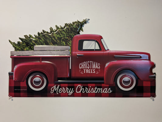 Red Truck - Christmas Tin Sign 22"x12"