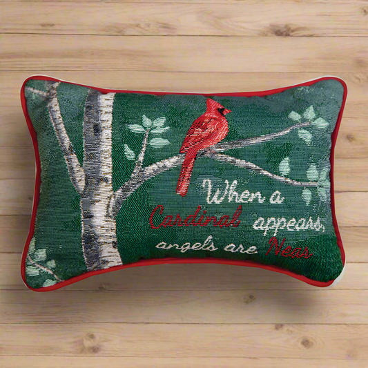When A Cardinal Appears Word Pillow 12.5x8 inch Tapestry Pillow with Piping