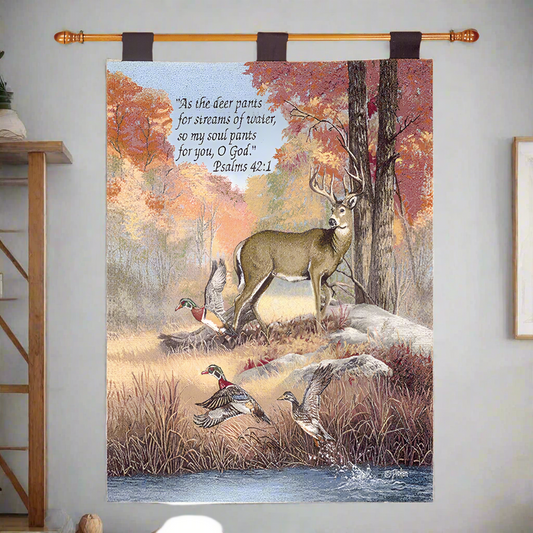Fur Feathers & Fall w/ Verse Tapestry Wall Hanging 26x36 inch Tapestry with Rod