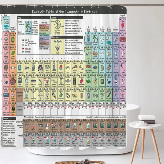 Periodic Table of Elements, Skeleton, Organs Shower Curtains Waterproof 3D Print Fabric Curtain