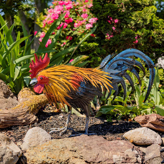 21.25" Tall Painted Iron Rooster Decoration Maxwell