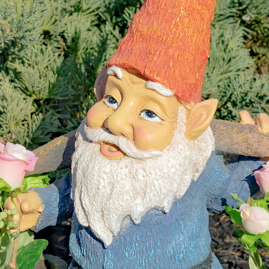 21" Tall Spring Gnome Garden Statue Holding Two Buckets