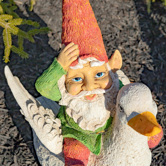 23" Tall Spring Gnome Garden Statue Riding a Duck