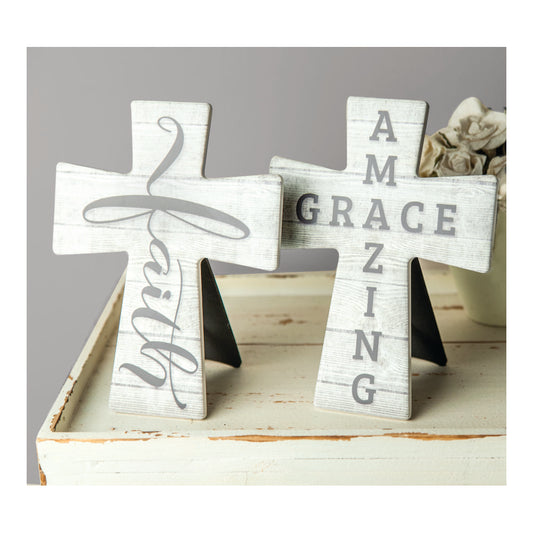 Amazing Grace Ceramic Cross With Easel Set of 2