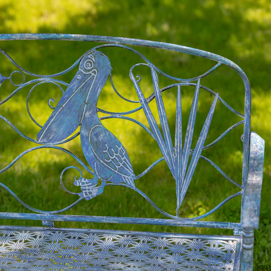Sarasota Coastal Garden Bench with Pelican and Angelfish