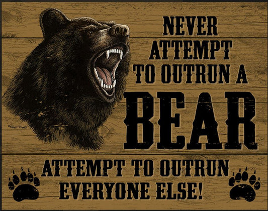 Never Attempt to Outrun a Bear - 16x12.5 - Tin Sign - Made in the USA