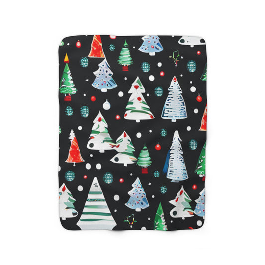 Colorful Christmas Trees Sherpa Fleece Blanket