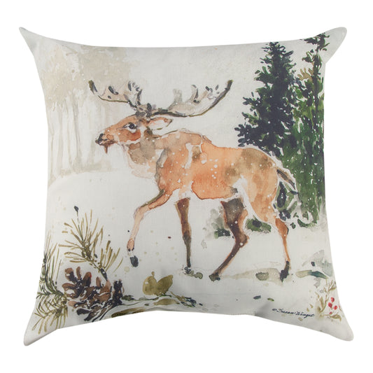 Snowy Forest Moose & Deer Climaweave Pillow 18" Indoor/Outdoor