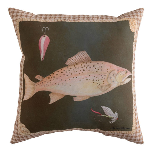 Gone Fishing Brown Climaweave Pillow 18" x 18"