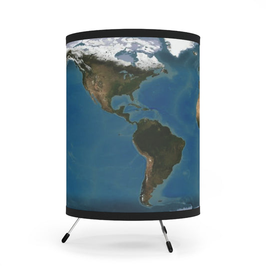 Flat Earth Tripod Lamp with High-Res Printed Shade